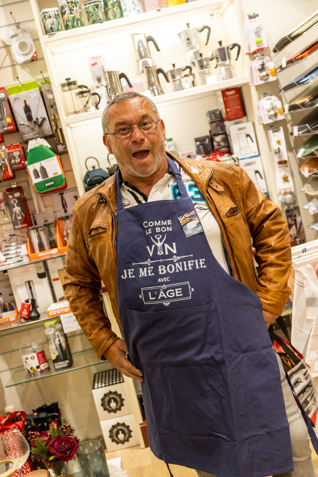 Jean-Louis, beau-Papa et Papou motard. Il a déniché des lunettes de soleil sportives chez Espace Vision qui lui seront bien utiles lors de ses sorties moto et vélo. La saison des barbecues est annoncée ? Le voilà équipé avec ce tablier humoristique de chez Geneviève Lethu. Et pour (se) faire plaisir après une séance shopping qui sort un peu de l’ordinaire, rien de tel que quelques douceurs chocolatées de chez Leonidas.