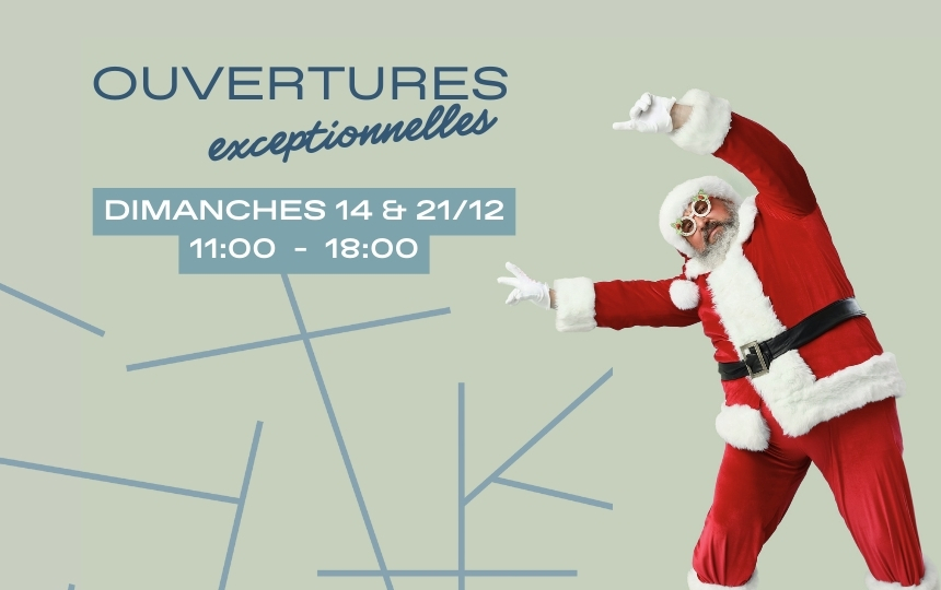 ✨ Profitez de nos ouvertures spéciales les 14 et 21 décembre, de 11h à 18h.